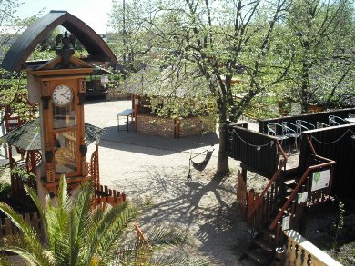 Vásárlóink hallgathatják a víz csobogását „Szerelem Parkunkban", nyugodt pillanatokat tölthetnek „Mediterrán Parkunk” pavilonjaiban, cseveghetnek "óriás boroshordónkban", hűsölhetnek kávé-, teakülönlegességeket kortyolva kis tavunk partján lehorgonyzott "hajónkon".